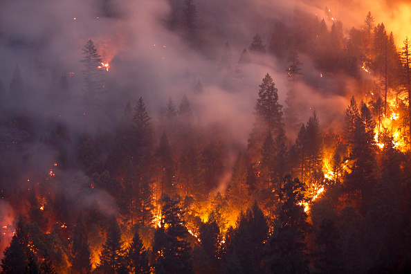 Forest burns in the Carr Fire on July 30, 2018 west of Redding, California. (Photo by Terray Sylvester/Getty Images)