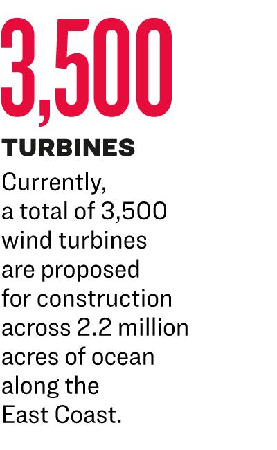 Currently, a total of 3,500 wind turbines are proposed for construction across 2.2 million acres of ocean along the East Coast.