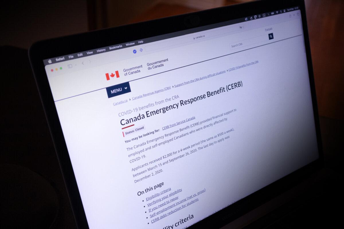 The landing page for the Canada Emergency Response Benefit is seen in Toronto, Dec. 9, 2025. Screenshot by The Epoch Times