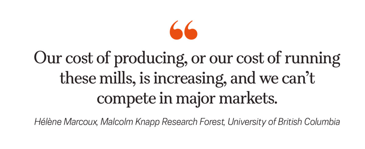 Hélène Marcoux, research director at the University of British Columbia’s Malcolm Knapp Research Forest, said B.C.’s forestry industry is being undercut by an increasingly competitive global market.