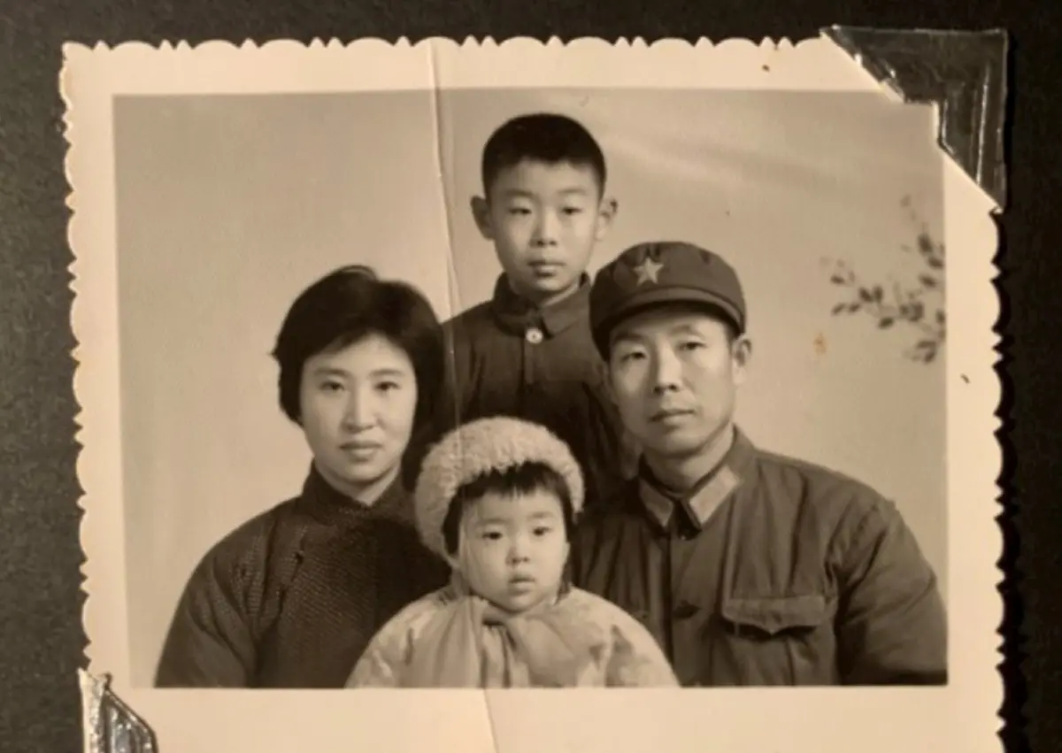 Roger Song as a child (top), with his mother, Lijuan Jia (left), his sister, Li Song, and his father, Ziling Xin (right), during China’s Cultural Revolution in 1974. Courtesy of Roger Song