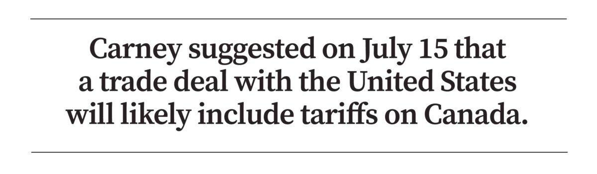 Carney suggested on July 15 that a trade deal with the United States will likely include tariffs on Canada.