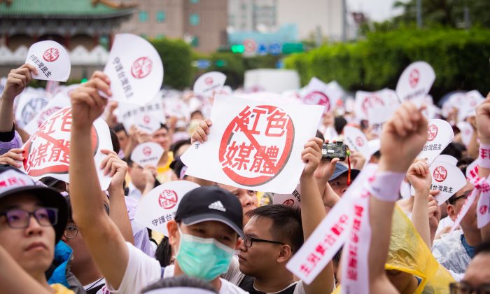Tens of thousands showed up on the street to protest against pro-China media in Taiwan on June 23, 2019. (Chen Bozhou/The Epoch Times)