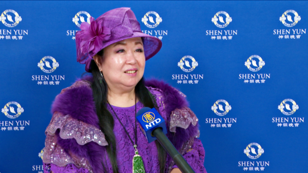 珠寶交流協會副理事長陳純美久聞神韻盛名,今天終於如願以償,看到節目中表現善良修煉人被迫害,她忍不住動容落淚。