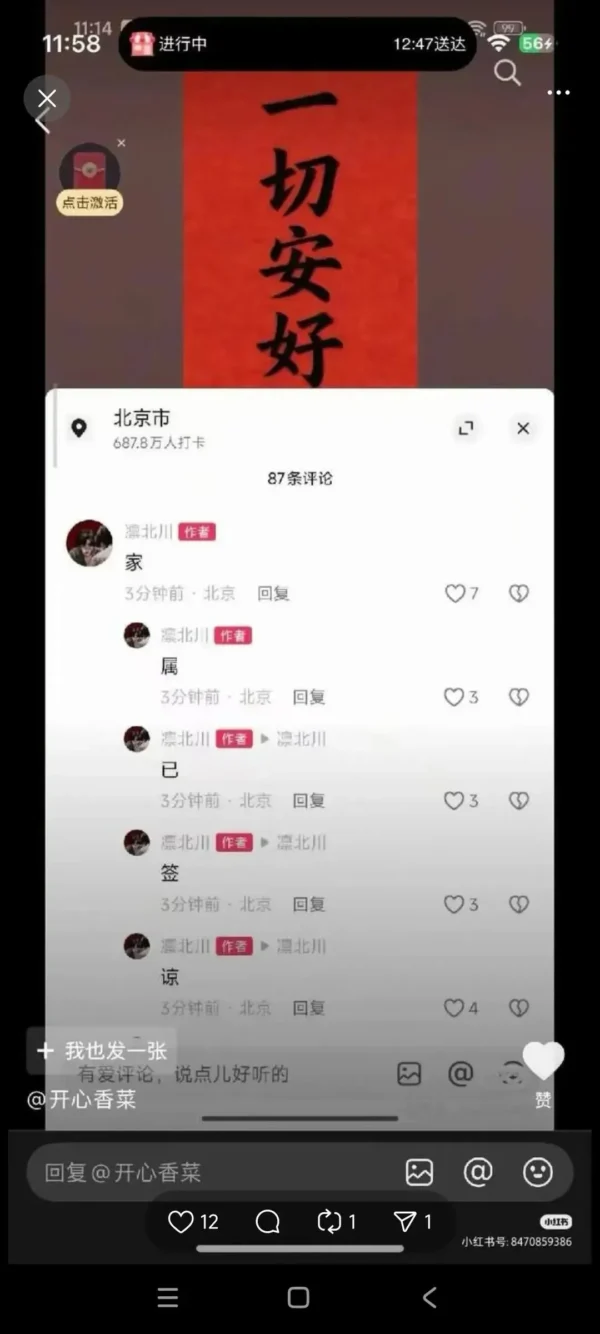根據網傳截圖,他還曾在抖音發圖報平安,並在評論區逐字留言「家.屬.已.簽.諒」,疑似暗示家人已在壓力下,替他簽署了保證書之類的東西,他無法再發聲,請求網友原諒。不過,上述内容在他的抖音帳號中已經消失不見。