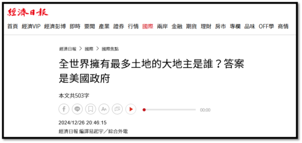 1. 編譯易起宇:全球擁有最多土地的大地主是誰?許多人都想不到,2024年12月26日,經濟日報,https://money.udn.com/money/story/5599/8451748