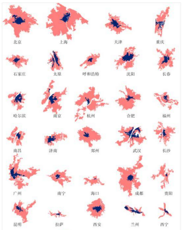 下面是1972年至2020年中國部分城市面積變化圖,資料來自中科院空天信息創新研究院[45]。