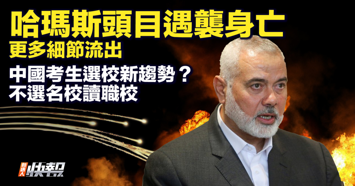 今日焦點:中國考生選校新趨勢:不選名校讀職校;哈瑪斯頭目遇襲身亡 更多細節流出;對沖基金大量撤離中國 流向日本;中共輸出跨國鎮壓 美眾院委員會譴責。