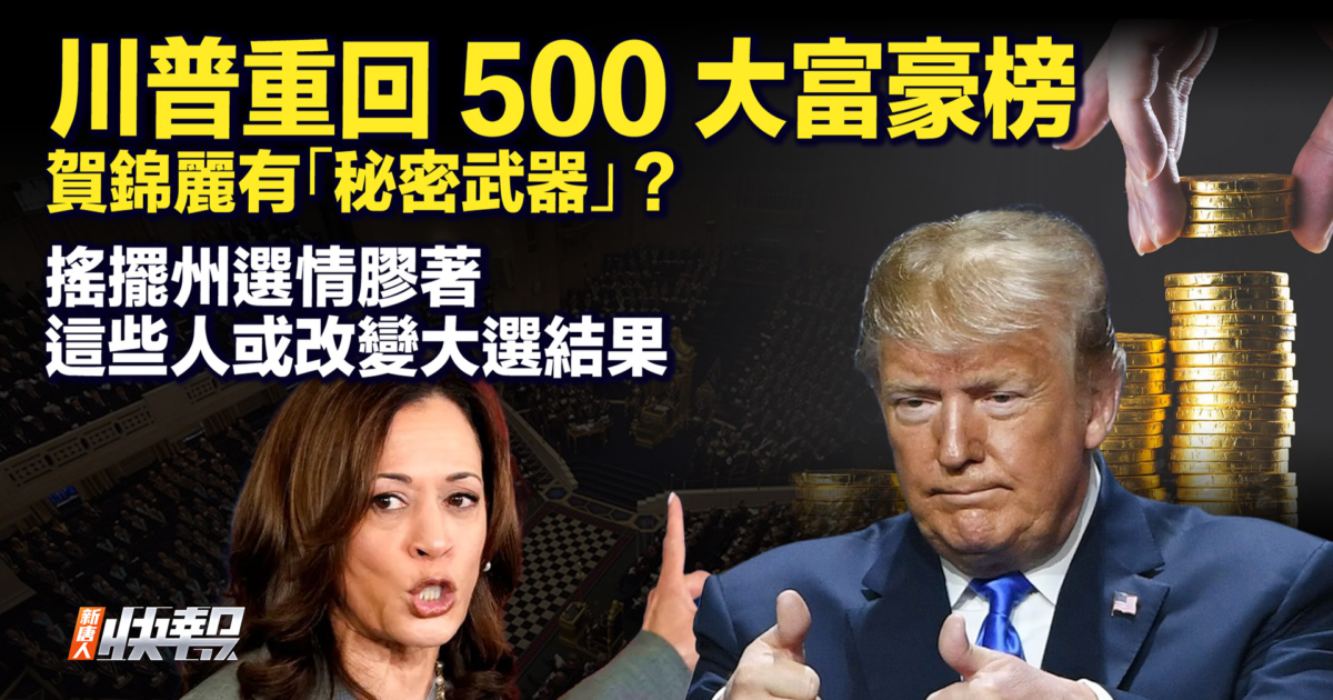 今日焦點:川普重回500大富豪榜 賀錦麗有「秘密武器」?搖擺州選情膠著 這些人或改變大選結果;美大選結果或引發市場波動 華爾街嚴陣以待;巴菲特不表態大選支持誰 兩黨重量級人物反水。