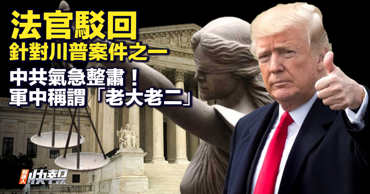 今日焦點:美法官駁回 針對川普案件之一;美媒:地方債超200兆 中國經濟如海市蜃樓;加調查中共海外警站 七國商議應對政策;軍中稱謂「老大老二」 中共整治引譏諷。