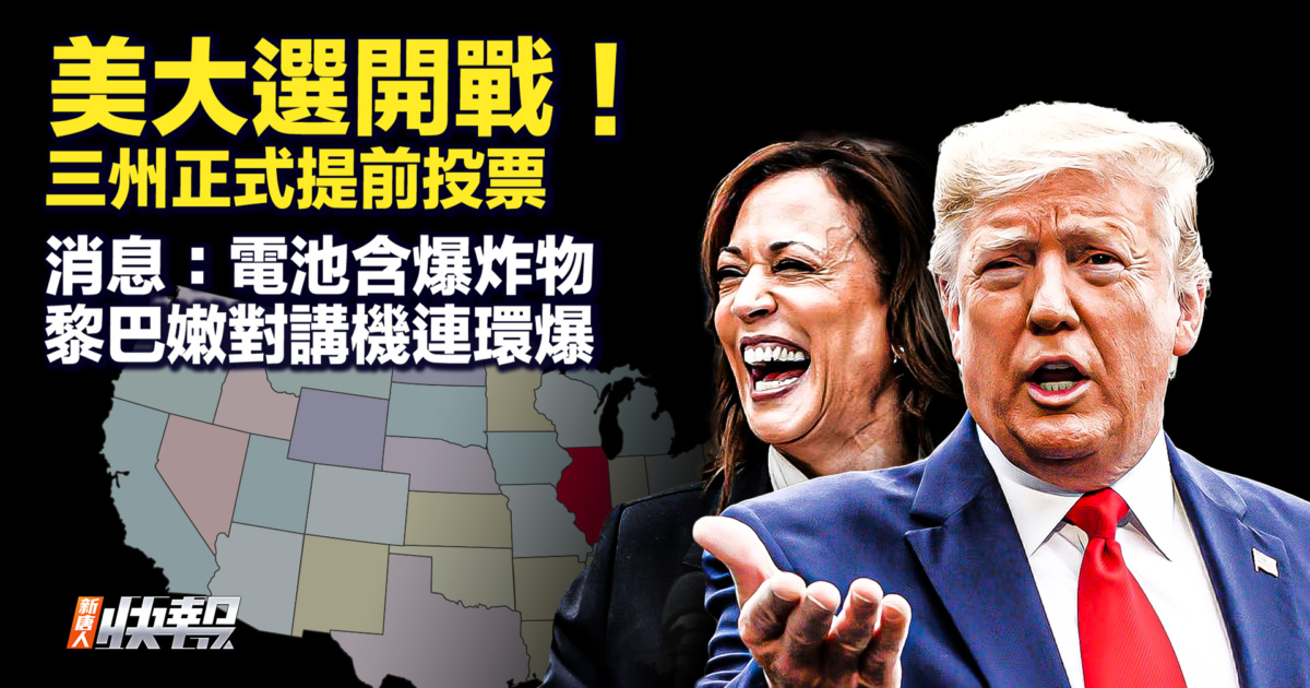 今日焦點:美大選打戰! 三州啟動提前投票;中國銀行裁員逾4萬 員工上街發傳單;真主黨高官被以軍擊斃 美曾懸賞7百萬;黎巴嫩對講機連環爆 消息:電池含爆炸物;美30年房貸率近6% 19月來最低。