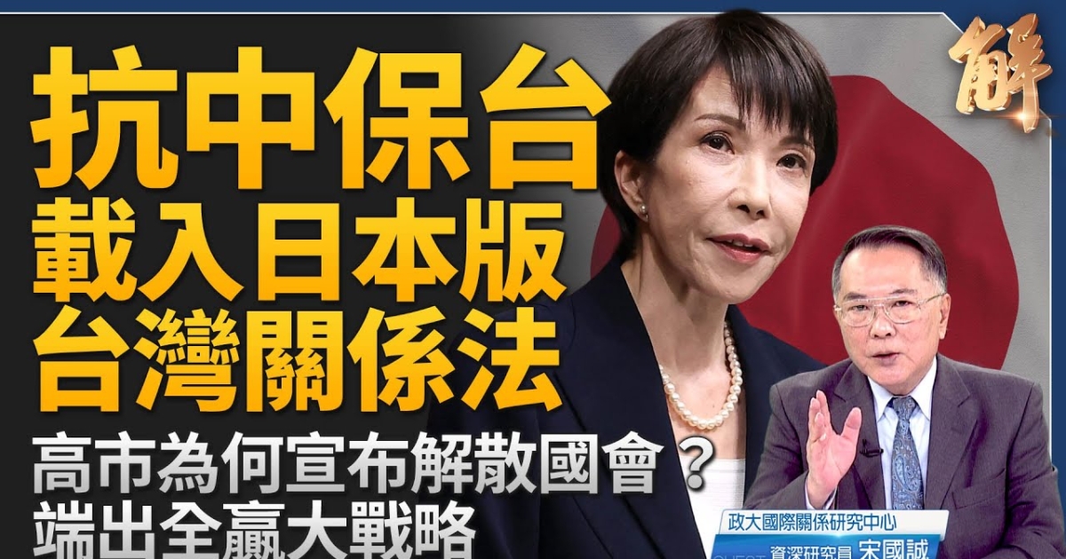 解散國會 高市大戰略公投 奠基修憲+日版台灣關係法? 日本首相高市早苗,宣布將在23日解散國會眾議院,2月8日投票改選。她在演說提到中共的脅迫、環繞台灣的軍演,她強調不願意挑戰的國家是沒有未來的,定調這是「一場一起由自己打造未來的選舉」,邁向「打造新國家」的第一步。 媒體解讀,這次改選被視為是一次對中路線的對決,被認為親中色彩的公明黨、立憲民主黨組成新政黨「中道改革聯盟」。 ▶請教宋國誠教授,(1)怎麼看高市的抉擇?(2)美日防長會談達成共識,從日本至台灣、南海的第一島鏈展開軍演,必不可少。