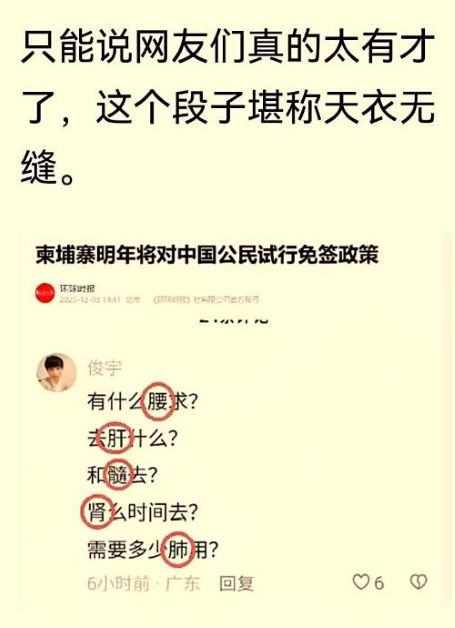 評論訪談 【每日一圖】去柬埔寨免簽 by Editor 1月 16, 2026 1月 16, 2026 註:「每日一圖」來源網絡,或網頁截圖,為紀錄當下中國網民的智慧和幽默。如發現有版權問題,請及時與我們聯繫。 (責任編輯:晟睿) 本文網址: https://www.ntdtv.com/b5/2026/01/16/a104057042.html from NTDTV.com 评论 0 FacebookTwitterLinkedinWhatsappEmail 相關文章 【每日一圖】童話 V... 4月 20, 2026 中共罪行錄:「六... 4月 20, 2026 王赫:擋不住的美中脫... 4月 20, 2026 王友群:中國學生家長... 4月 20, 2026 【傑森口譯】托馬斯大... 4月 19, 2026 【傑森視角】拿捏習近... 4月 19, 2026 中共罪行錄:「挖」和... 4月 19, 2026 沈舟:美軍海上封鎖碾... 4月 19, 2026 【每日一圖】1:20... 4月 18, 2026