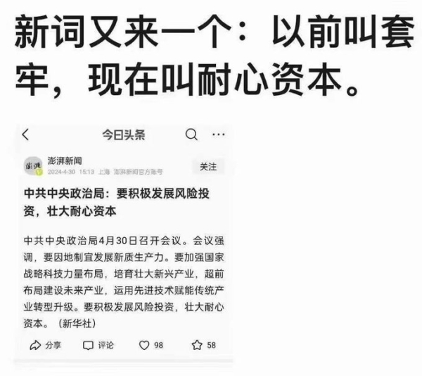 評論訪談 【每日一圖】新詞又來一個 by Editor 9月 17, 2024 9月 17, 2024 註:「每日一圖」來源網絡,或網頁截圖,為紀錄當下中國網民的智慧和幽默。如發現有版權問題,請及時與我們聯繫。 (責任編輯:劉明湘) 本文網址: https://www.ntdtv.com/b5/2024/09/16/a103913953.html from NTDTV.com 评论 0 FacebookTwitterLinkedinWhatsappEmail 相關文章 【每日一圖】一人躺平... 4月 30, 2026 周曉輝:為何中共堅決... 4月 29, 2026 「下輩子不來了」 大... 4月 29, 2026 王友群:為何張又俠的... 4月 29, 2026 汪志遠:紀念4.25... 4月 29, 2026 【每日一圖】水滸對比... 4月 29, 2026 【每日一圖】「基本盤... 4月 28, 2026 李平:封鎖伊朗是手段... 4月 28, 2026 何艾珊:我所親歷的「... 4月 28, 2026