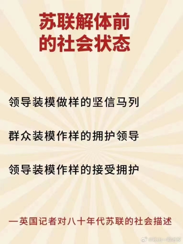 評論訪談 【每日一圖】蘇聯解體前的社會狀態 by Editor 9月 18, 2024 9月 18, 2024 註:「每日一圖」來源網絡,或網頁截圖,為紀錄當下中國網民的智慧和幽默。如發現有版權問題,請及時與我們聯繫。 (責任編輯:劉明湘) 本文網址: https://www.ntdtv.com/b5/2024/09/16/a103913955.html from NTDTV.com 评论 0 FacebookTwitterLinkedinWhatsappEmail 相關文章 張平:你不可能既熱愛... 4月 22, 2026 【每日一圖】治國三招 4月 22, 2026 進化騙局(23) 核... 4月 22, 2026 【每日一圖】根雕手 4月 21, 2026 周曉輝:美軍開火攔截... 4月 21, 2026 張菁:從環月宇航員感... 4月 21, 2026 【每日一圖】童話 V... 4月 20, 2026 中共罪行錄:「六... 4月 20, 2026 王赫:擋不住的美中脫... 4月 20, 2026