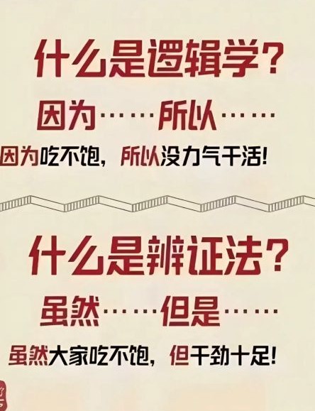 評論訪談 【每日一圖】邏輯學與辯證法 by Editor 3月 26, 2026 3月 26, 2026 註:「每日一圖」來源網絡,或網頁截圖,為紀錄當下中國網民的智慧和幽默。如發現有版權問題,請及時與我們聯繫。 (責任編輯:晟睿) 本文網址: https://www.ntdtv.com/b5/2026/03/25/a104079816.html from NTDTV.com 评论 0 FacebookTwitterLinkedinWhatsappEmail 相關文章 【每日一圖】1:20... 4月 18, 2026 千百度:共產黨統治下... 4月 18, 2026 周曉輝:石泰峰不提「... 4月 18, 2026 潘石屹《我的反思》背... 4月 17, 2026 【每日一圖】艾滋防活... 4月 17, 2026 王赫:中共四措施洩其... 4月 17, 2026 韋拓:中共第五縱隊損... 4月 17, 2026 夏林:美伊戰爭 仁義... 4月 16, 2026 【 每日一圖】世界公... 4月 16, 2026