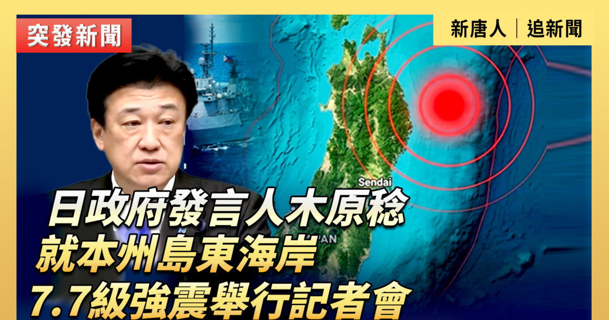 【新唐人北京時間2026年04月20日訊】美東4月20日,日本東京,日本政府首席發言人木原稔(Minoru Kihara)就本州島東海岸發生的 7.7級強震舉行記者會。新唐人、大紀元進行網絡重播,即時翻譯字幕。