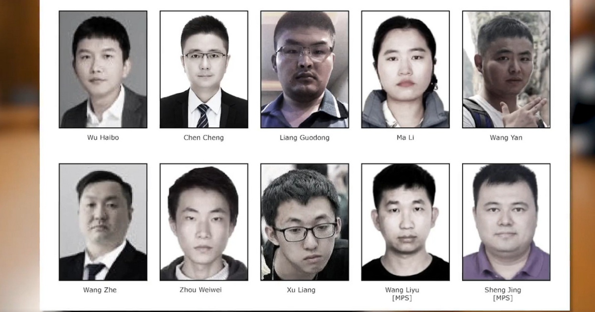 這些人是中共公安部的2名官員王立宇和盛晶、安洵信息技術有限公司(Anxun Information Technology Co. Ltd.,「i-Soon」)的8名員工,包括執行長吳海波、營運長陳誠、銷售總監王哲和技術人員梁國棟、馬麗等5人,另外還有黑客組織APT27的2名成員。