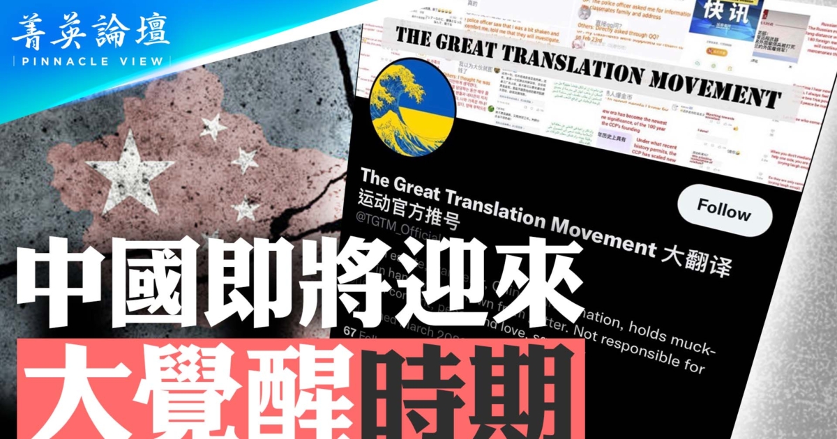 而大翻譯運動,是2022年俄烏戰爭爆發後出現的一場網路群體運動。參與者直接翻譯網絡上大量中共媒體的不實報導和部分民眾的評論。大翻譯運動官方推特說,他們開啟這個運動的目的不是抹黑誰,而是忠實地翻譯謊言,使人們覺醒,讓中國走向民主和憲政。英國衛報曾說,大翻譯運動已經成為英語國家瞭解中共官媒對俄烏戰爭的態度及評價的一個重要資訊來源。不過,中共一直在說,大翻譯運動是在抹黑中共。我覺得這話本身是非常滑稽的。這其實是在說,中共媒體自己的報導就已在抹黑中共。