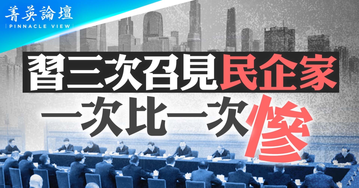 【新唐人北京時間2025年02月26日訊】2月17日,中共最高層召開了一個民營企業家座談會,中共黨魁習近平出席會議並講話。會議由王滬寧主持、國務院總理李強和第一副總理丁薛祥出席了會議。外界最關注的是,過去幾年漸漸隱退的馬雲,和傳說遭到調查的馬化騰等人,都出席了這次會議。這是不是代表北京對中國民營企業家,將會放寬管制呢?過去幾年,國進民退已經成為中國經濟的一個主旋律,私營企業投資越來越少,大量企業和資本跑路。一個官方高調召開的座談會,是不是能夠扭轉局面呢?