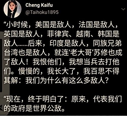 評論訪談 【 每日一圖】世界公敵 by Editor 4月 16, 2026 4月 16, 2026 註:「每日一圖」來源網絡,或網頁截圖,為紀錄當下中國網民的智慧和幽默。如發現有版權問題,請及時與我們聯繫。 (責任編輯:晟睿) 本文網址: https://www.ntdtv.com/b5/2026/04/14/a104086741.html from NTDTV.com 评论 0 FacebookTwitterLinkedinWhatsappEmail 相關文章 潘石屹《我的反思》背... 4月 17, 2026 【每日一圖】艾滋防活... 4月 17, 2026 韋拓:中共第五縱隊損... 4月 17, 2026 王赫:中共四措施洩其... 4月 17, 2026 夏林:美伊戰爭 仁義... 4月 16, 2026 【每日一圖】世間最惡 4月 15, 2026 中共罪行錄:因胡風案... 4月 15, 2026 2026年第一季度三... 4月 14, 2026 王友群:為什麼習力挺... 4月 14, 2026