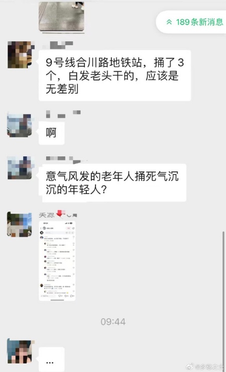 上海地鐵站發生持刀傷人案的視頻和信息,迅速在中國社交媒體流傳,引發網友熱議:「疑似是有人被傷害了,合川路站早上人流密集,大家保護好自己,別老看手機。」