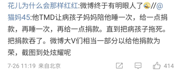 有網友稱:「雷某讓患病孩子媽媽陪他睡一次,給一點捐款,再睡一次,再給點捐款,直到把患病孩子拖死,把捐款吞了。」