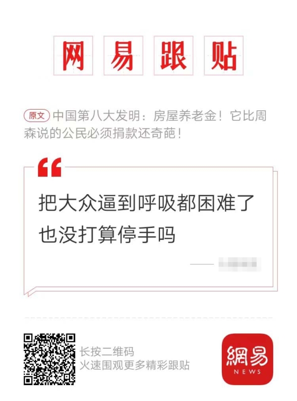 還有網民說:「(中共)官方現在不過是試探韭菜們的底線,加稅這事已經不能逆轉了,**用錢的地方太多了,非洲要**當撒幣,鵝爹要**當孝子,隨便來個島國幾句奉承就能卷個幾十億美金,**覺得倍兒有面兒。國家(中共)本來就壟斷了石油,燃氣,供水,供電,電網,電信,無線電,網絡,移動,電視台,電台,鐵路,航空,河運,海運,銀行,保險,證券交易,航空航天,水利,食鹽,菸草,糧儲等。還不知足,醫療教育養老至今也未免費。黨現在就是貪得無厭毫無底線。現在拿百姓敲骨吸髓真的一點也不出乎意料。」