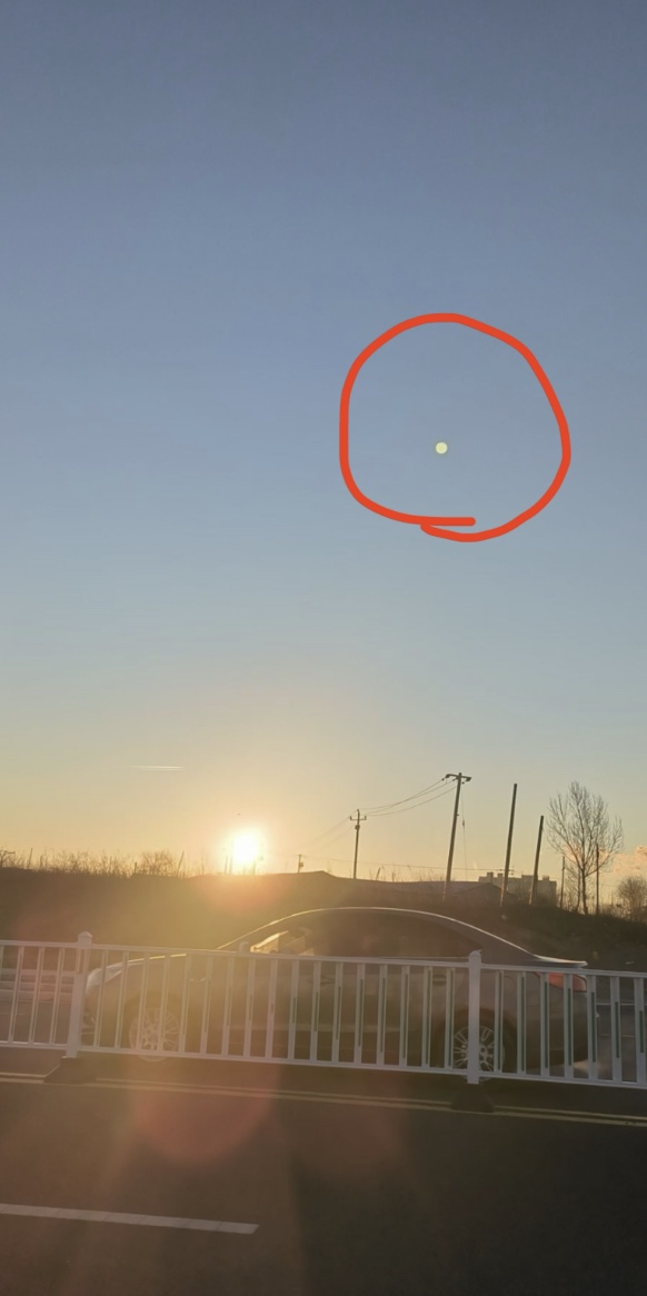 內蒙古赤峰也有網友拍到天空中出現兩個太陽的照片,顯示天空中有一大一小兩個太陽,「2024.12.5號, 早上大概7點50分左右,我也是很懵······」