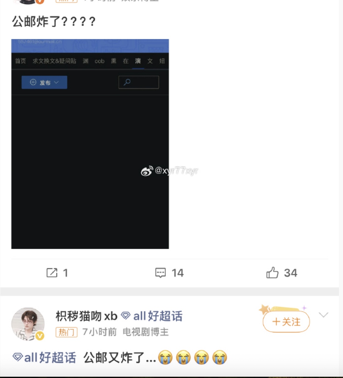 有網友發帖稱,「30多個公郵僅存1個」,「21個郵箱全炸光」「人家三十幾個公郵炸得只剩之前打比賽傳文件的那個了」。