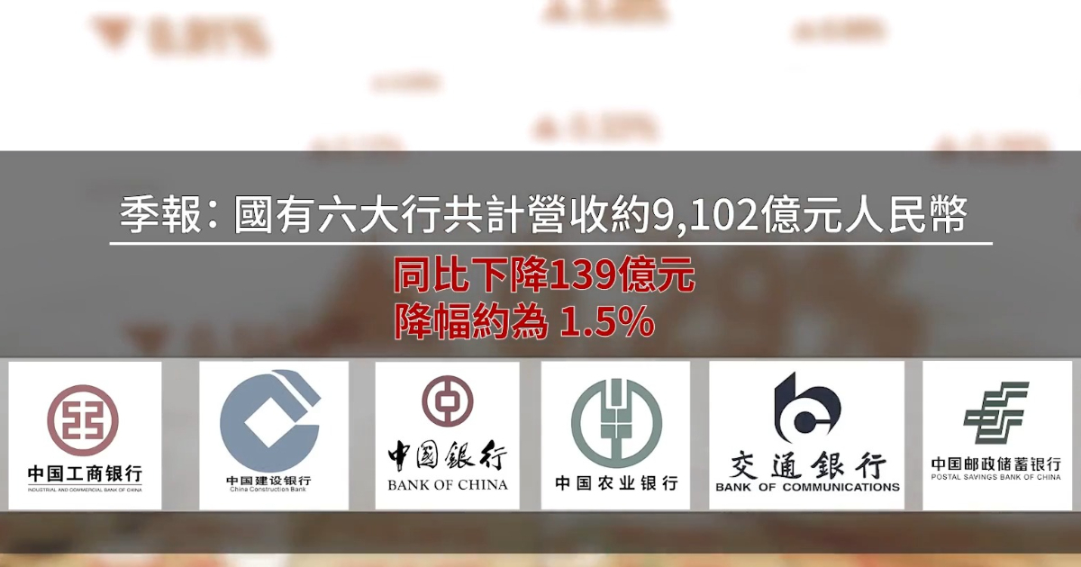 【新唐人北京時間2025年05月03日訊】中國六大國有銀行,四月底發布第一季度財報。六大行整體業績表現不佳,營收與淨利潤雙雙下滑,顯示中國經濟的長期疲弱。而美中關稅戰帶來的影響目前還未顯現。