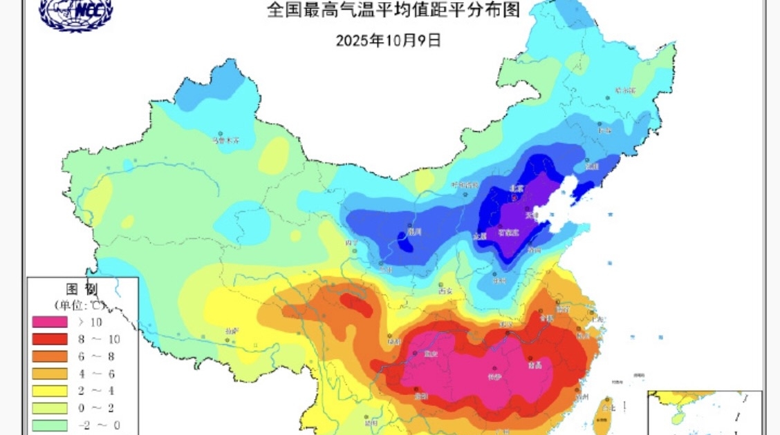 同時,此次陰雨過程伴隨著斷崖式降溫,京津冀一帶最高氣溫比常年10月上旬偏低了10℃以上。北京48小時內驟降10℃,10月9日最高溫僅10.6℃,打破1951年建站以來的10月上旬紀錄,體感冷如12月初。