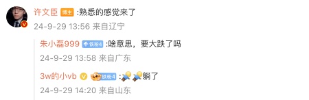 許多網友回應:「啥意思,要大跌了嗎?」