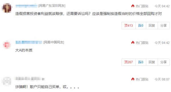 許多股民在網上控訴,當局只實施所謂「嚴厲的退市制度」,但沒有完善的賠償機制,這相當於「詐騙」,「散戶只能自己買單」。
