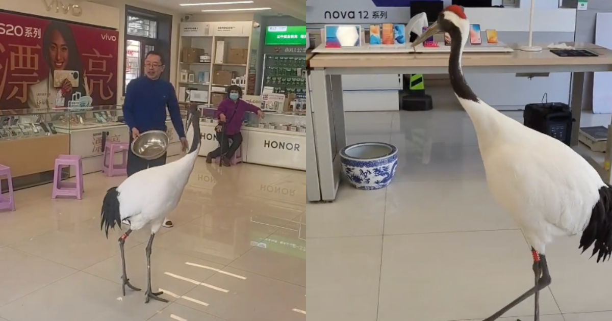 遼寧,一隻丹顶鹤逛手機店。 pic.twitter.com/kmk4W4sURt
