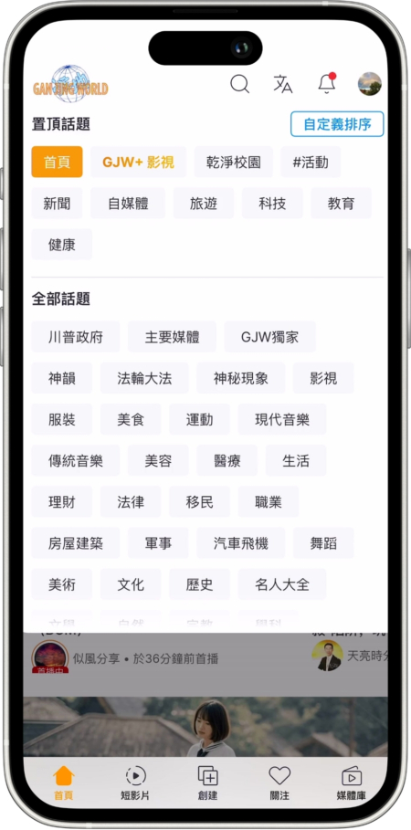 乾淨世界介紹,新的界面首頁的主分類,提供客製化選項,你可以隨時把自己最感興趣的分類挪到最前面,便於跟進瀏覽,發現最新內容。