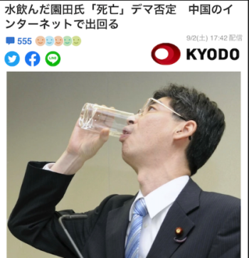 相關傳言引發了公眾的質疑與惶恐情緒,為此,園田康博於9月2日接受了日本共同社的採訪,現身公眾面前以自證「還活著」。