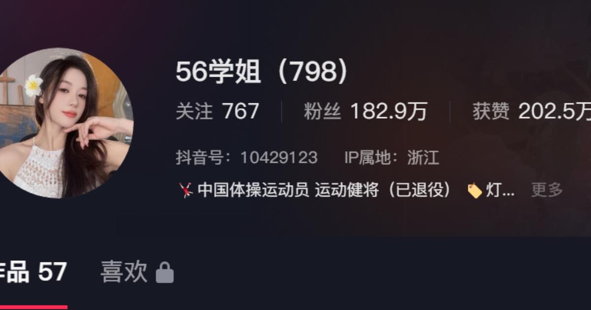 自今年4月以來,吳柳芳在抖音平台的認證帳號「56學姐(798)」發布了58條視頻,其中大部分的主題為以跳舞為主。