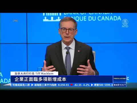 加拿大央行再降息 貿易戰不確定性是關鍵 在貿易緊張局勢加劇,以及美國加徵關稅之際,加拿大央行週三將基準利率,下調25個基點到2.75%,這是自2024年6月以來連續第七次降息。 #通脹率 #加徵關稅 #新唐人电视台