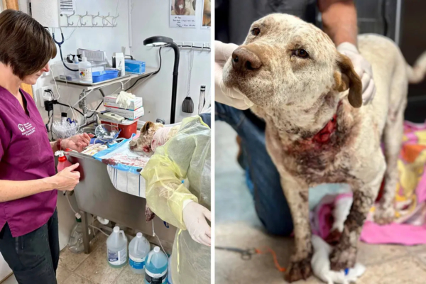 收容所的工作人員馬上取下飼主為狗狗包紮的止血繃帶,發現它的傷口「非常大」。「這是我見過的最大的傷口」,艾倫女士說,那是它的頸靜脈被刀割斷造成的。
