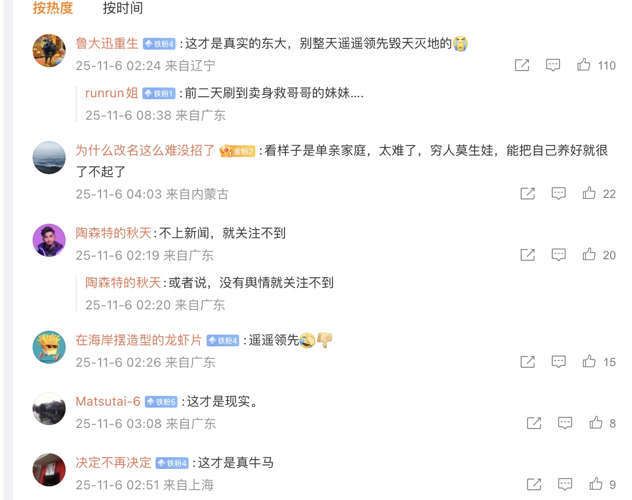 還有網友批評中共當局對生存陷入困境的人沒有基本的社會保障,「這才是真實的東大」「把錢補貼自己人 不要補貼外國人好嗎」「呼籲廉租房應該向所有底層困難人群開放」「沒有輿情就關注不到」。