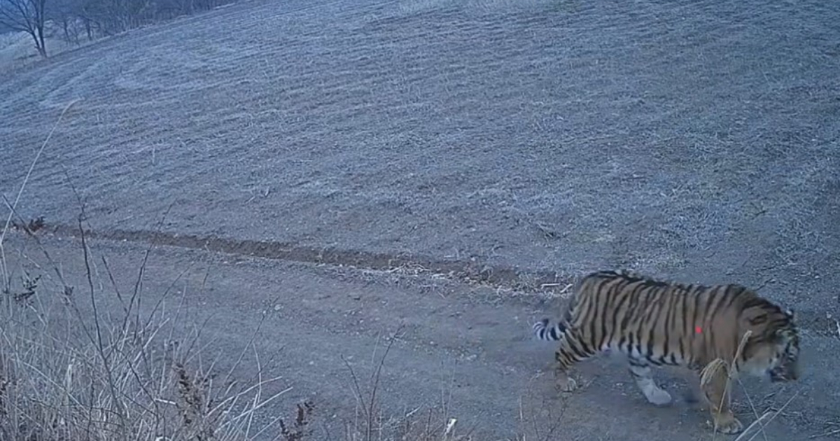 事發地點在吉林琿春市仲坪村。根據監控視頻顯示,3月22日清晨5點多,一隻體型稍大的老虎慢悠悠的在村口沿路「蹓躂」,不慌不忙,看了讓人心驚。