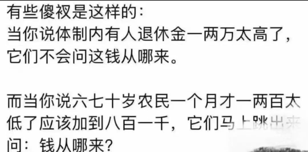 文章說:「從2009年到現在,全國農民基礎養老金最低標準從55元漲到了143元,平均每年漲了五塊五,假設以1000元為目標,還需要155年。 2024年和2025年漲幅最大,分別漲了20元,以此為標準,漲到1000元也需要43年。」
