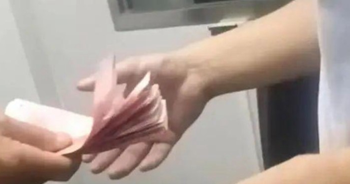 視頻顯示,醫護人員現場收了一疊現金,清點後放進了口袋裡。