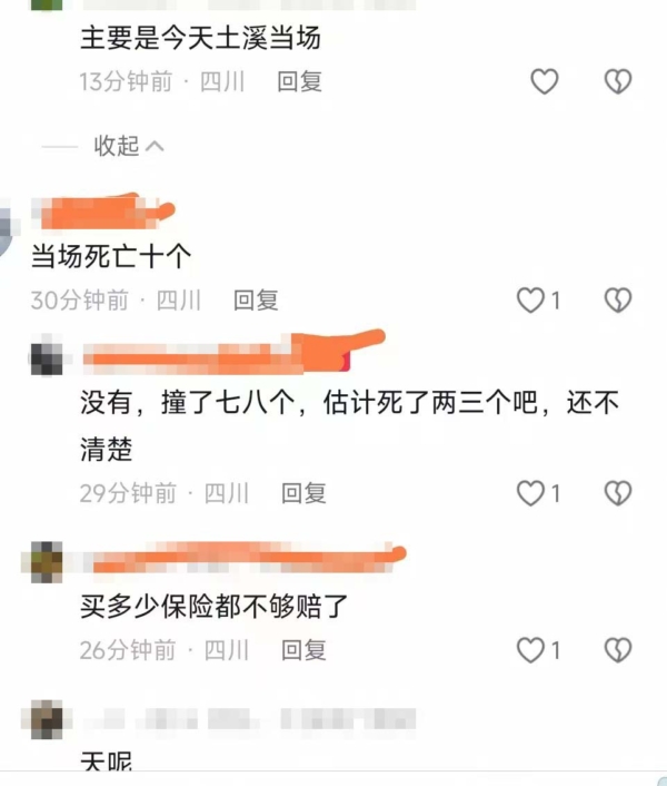 有當地網民說,「估計(當場)死了兩三個吧」。