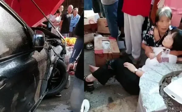 事發8月17日早上,達州市渠縣土溪鎮集市上,一輛寶馬車衝入人群,撞倒路邊攤位,多人倒地。