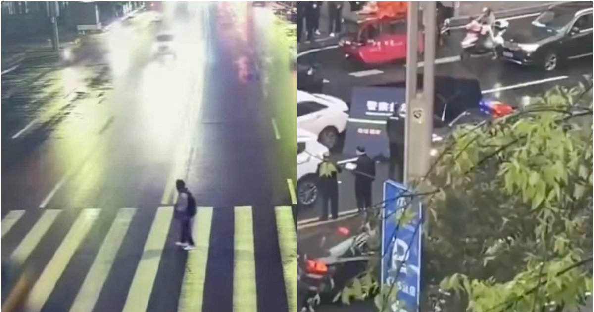 南充多名網友在社交平台發布的視頻顯示,事發時天色微亮,在一個沒有交通指示燈的十字路口,一名男孩背著書包,小心翼翼地走在斑馬線上,躲避著來來往往的車輛。他走到中心實線處停下,等待對面車道的車輛通過。突然,左側一輛白色的車輛飛速開來,將他撞飛,並摔倒在不遠處的對向車道。一輛汽車急剎不住,壓過該男孩。