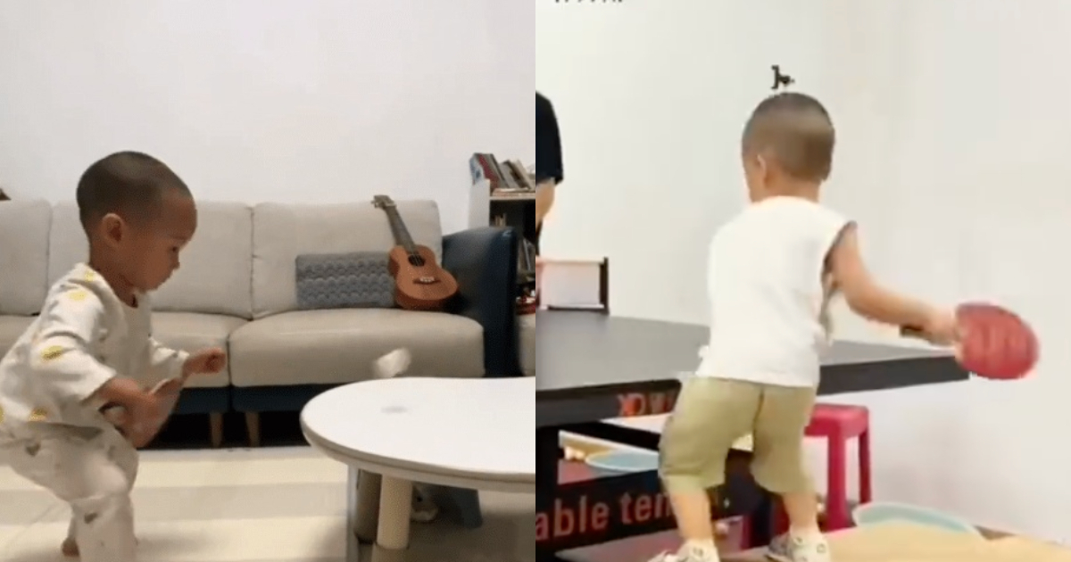 網傳視頻顯示,一名3歲男童在家中的茶几上與父親打乒乓球,自如地變換正反手法,打得有模有樣,最後一擊使正手殺球,然後瀟灑轉頭離去。