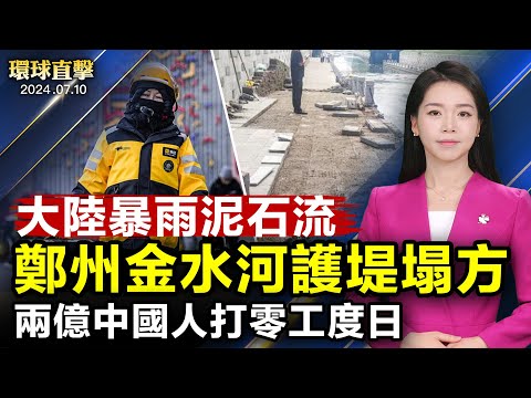 大陸多地暴雨泥石流 鄭州金水河護堤塌方