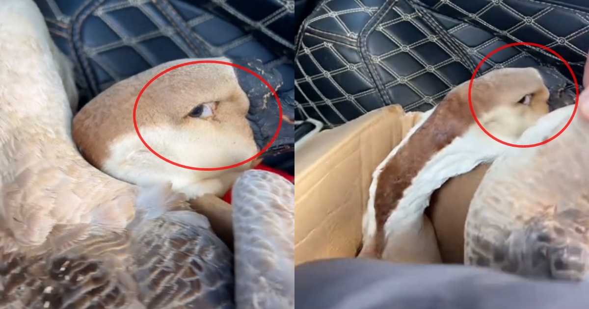 1月13日,廣東網民「坪徑十三乖」在社交媒體發布了視頻。視頻顯示,一名男子準備將自家飼養的大鵝裝入車中運往市場出售。當他看到大鵝那雙充滿哀怨的眼神時,摸著鵝的頭說,「不賣了、不賣了。」「我放了它。」